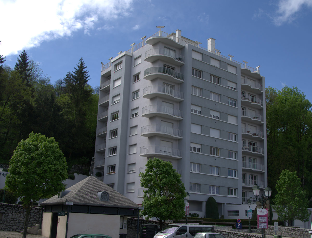 ← Entre deux éclaircies, les belles (maisons) bourgeoises brillent, à Argelès Gazost ( Hautes Pyrénées)