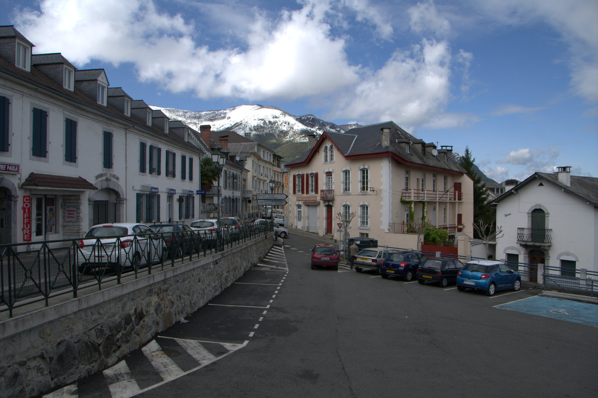 ← Entre deux éclaircies, les belles (maisons) bourgeoises brillent, à Argelès Gazost ( Hautes Pyrénées)