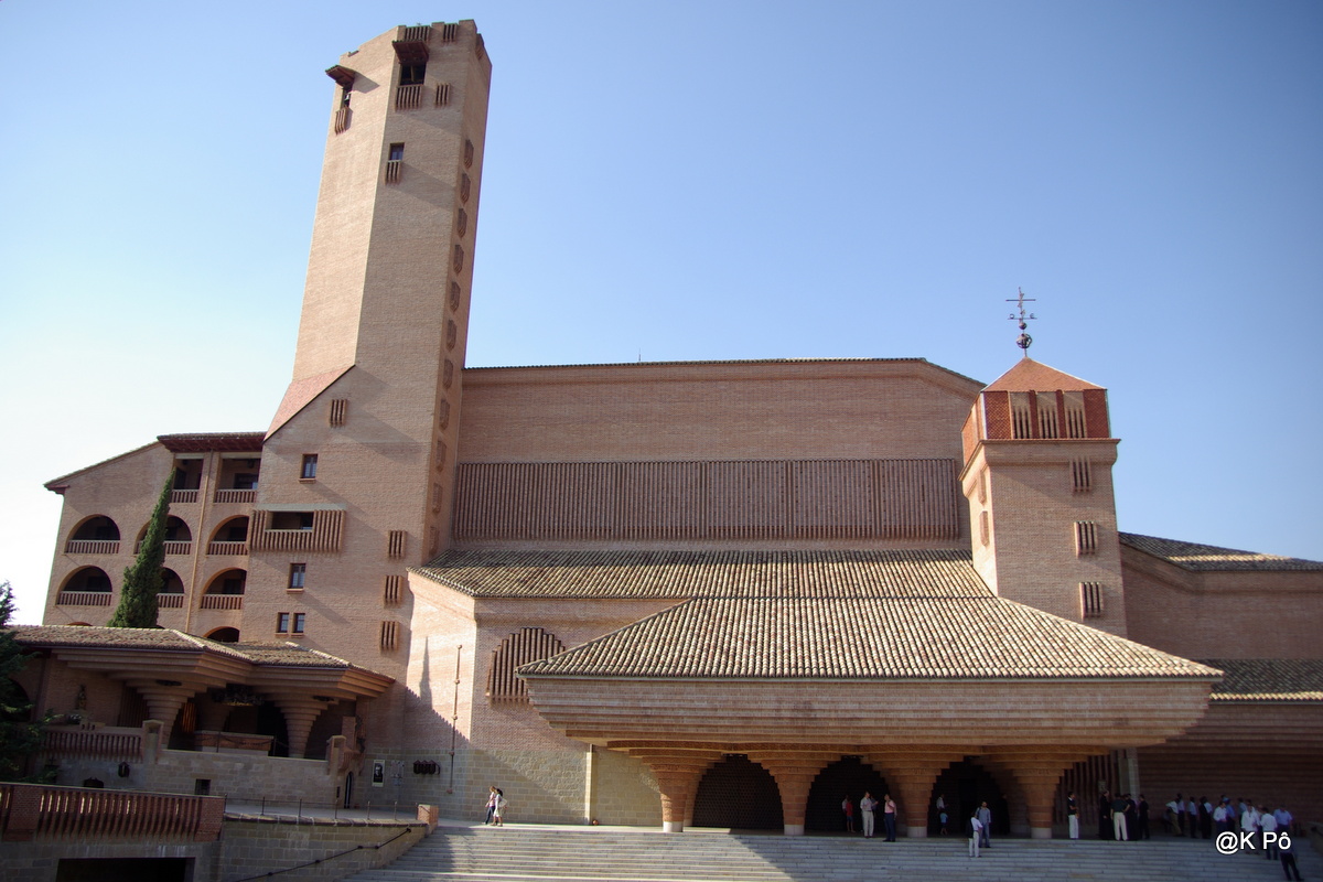 ← derrière la ligne de crêtes des Pyrénées, l’Espagne en contrebande (du côté de Huesca), le sanctuaire de l’Opus Dei (Torreciudad)