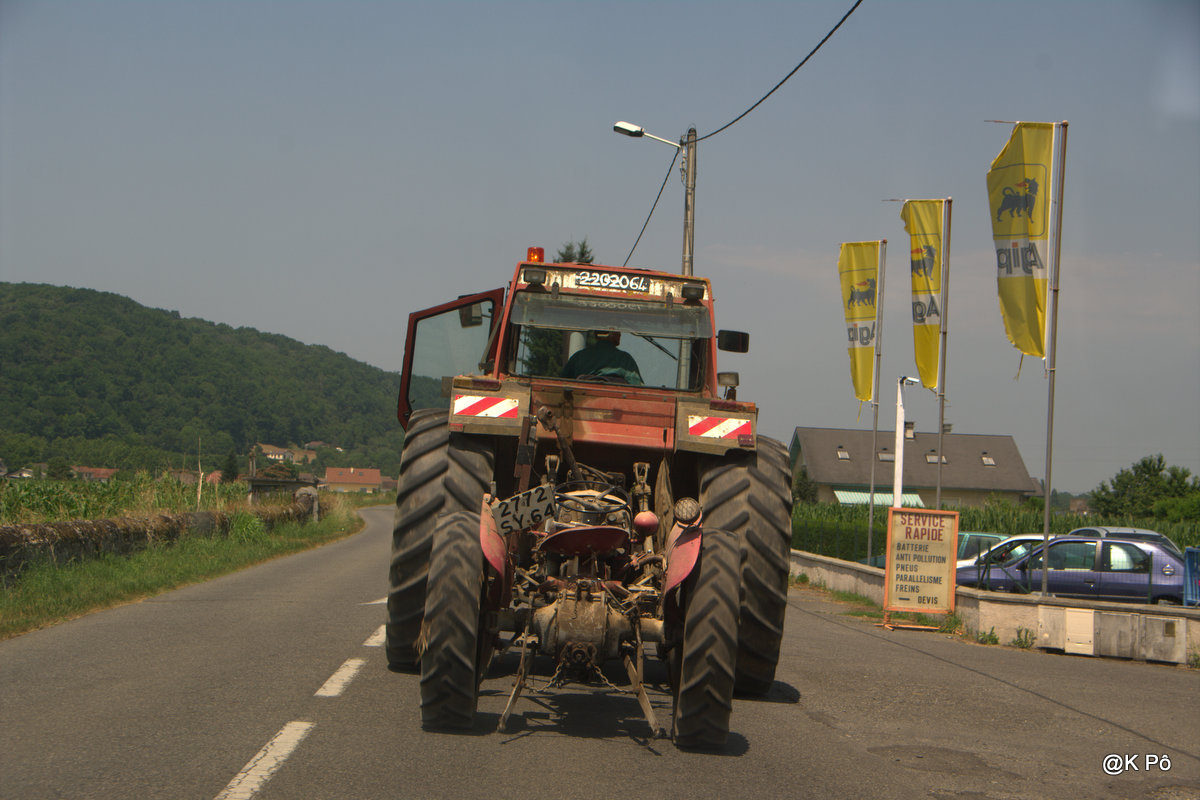 Ainsi la photo d’aujourd’hui : lquand la maman tracteur promène son petit, c’est le signe certain que les récoltes seront mauvaises (un petit tracteur, à cette époque, est déjà au champ, pour tracter comme son nom l’indique, les grosses meules de foin empaquetées comme une mortadelle aviaire).