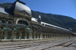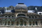 En balade dans la vallée d’Aspe, Chinette et Chinou ont franchi le col du Somport et sont descendus, environ 8 km plus bas, à Canfranc, en Espagne. Chinou voulait montrer à Chinette ce bâtiment à la riche et triste histoire (cf le lien de ce site très bien fait, avec de nombreuses photos : http://www.retourdumonde.fr/blog/canfranc-gare-grande-titanic/). Le train circule de Canfranc à Huesca, puis Zaragoza, et ensuite jusqu’à Madrid…