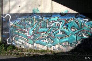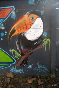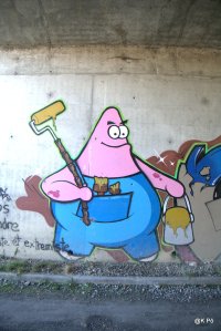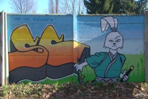 Ils oeuvraient pour aider une asso, « une vie meilleure », qui s’occupe de gosses en difficulté(s). Le temps a passé, la peinture a séché, et l’eau de l’Echez a dû se jeter dans l’océan avant que Chinette et Chinou (en demandant à des chasseurs, puis à des gens rinçant les boyaux du pêle porc dans le ruisseau et enfin à un papi promenant ses chiens…). Mais nous avons fini par trouver. Voici donc la moisson d’images réalisées ce samedi (hier) matin, en banlieue tarbaise. Ouvrez l’oeil !