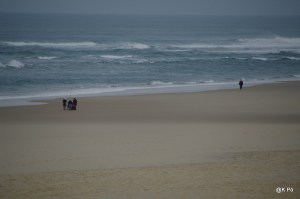 Je n’aime pas la foule, mais dans ces petites (?) stations balnéaires fréquentées par des milliers de gens l’été il est toujours réconfortant de trouver ne serait-ce qu’un petit troquet ouvert… Il faisait cinq degrés ce matin à Mimizan Plage, vers onze heures du matin. Ambiance dans l’espace proche du bord de mer :
