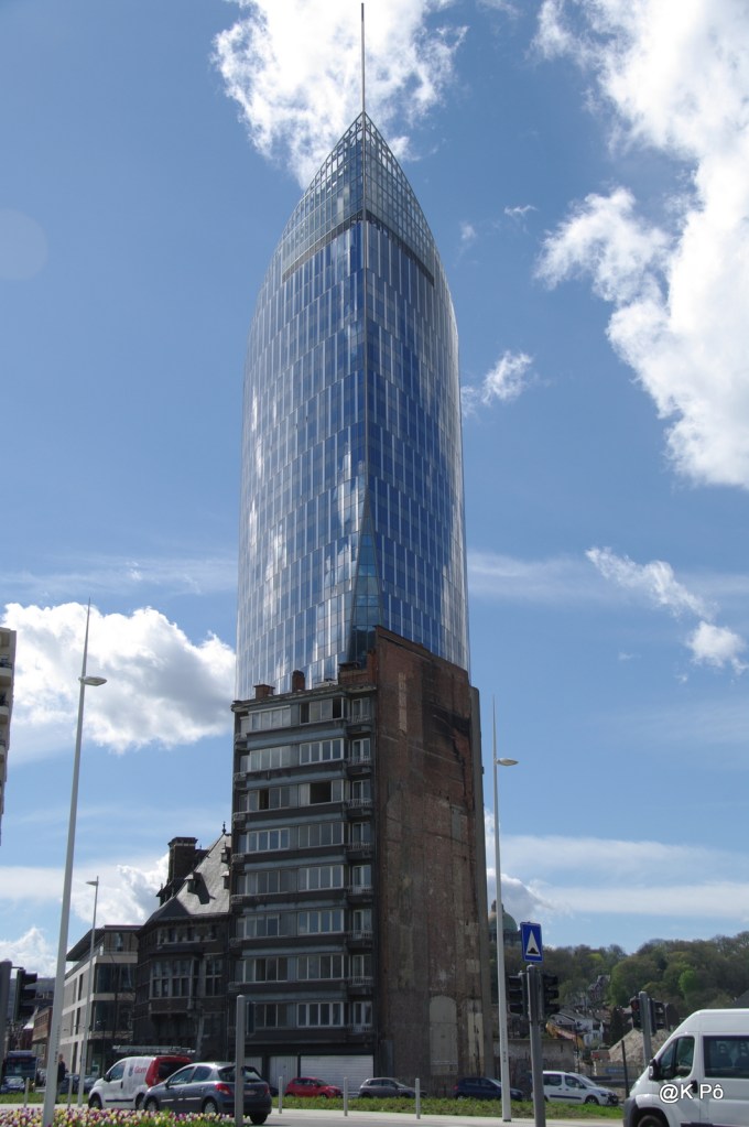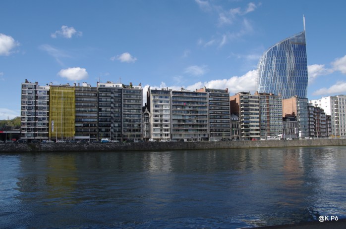 Quatre jours à Liège pour visiter…la famille de Chinette. Nous avons donc vu maman Nonna cité de l’ONU à Montegné, marraine Rachel, une tante, une nièce avec bébé, une soeur, un fils et sa famille vers Visé… Ce qui n’a pas laissé beaucoup de temps pour se balader en ville. Chinou voulait aller à la Citadelle sans monter les escaliers, mais nous nous sommes perdus sur les parkings de l’hôpital…De fait, nous nous sommes baladés le long de la Meuse, en faisant un petit tour vers le centre d’art et culture, l’église saint Vincent et la récente (deux ans) tour Paradis, la plus haute de Wallonie, qui abrite le ministère des Finances.