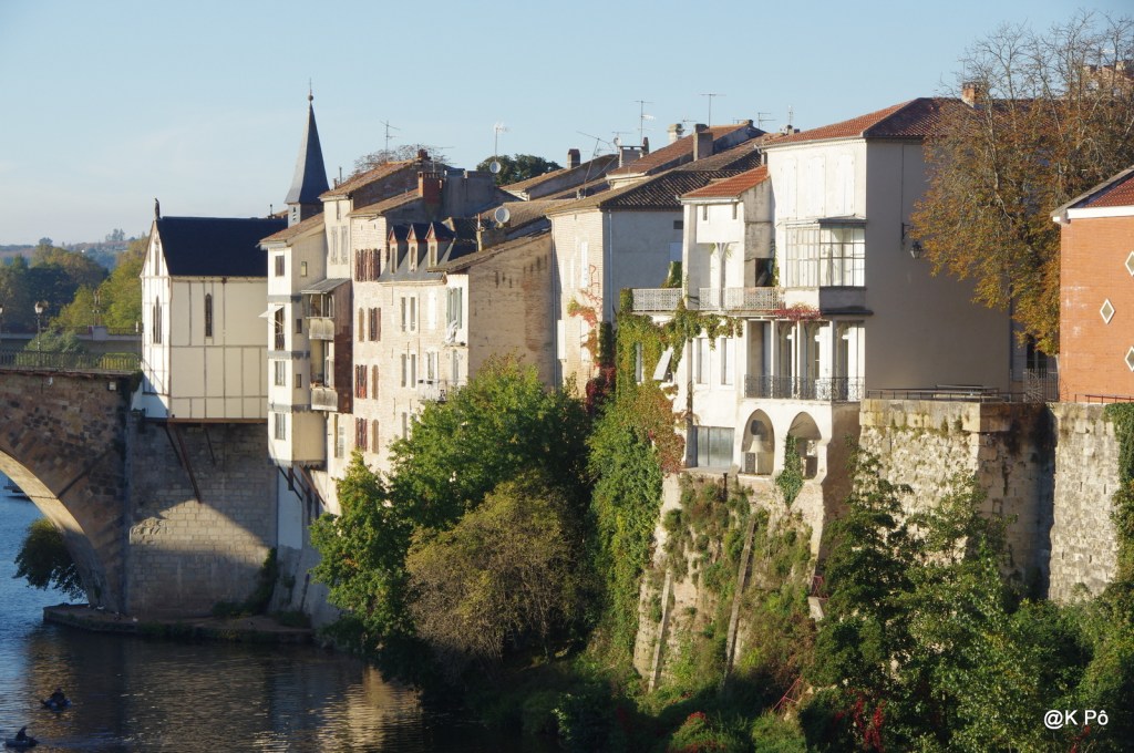 Villeneuve sur Lot, sous préfecture du Lot et Garonne, est une bastide (comme il y en a beaucoup dans la région) située à cheval sur le Lot. La légende veut que le premier pont qui fut construit (pont des Cieutat) ait été testé (pour sa solidité) par les éléphants d’Hannibal, après qu’ils eussent mangé tous les fruits des vergers dont les environs sont pourvus. Le pont résista, contre toute attente. Bien plus tard cependant deux arches furent anéanties en février 1600 par une crue du Lot. Il fallut attendre 1643 , sous l’ordre de Richelieu, pour que soit érigée une seule arche de 35 mètres de diamètre. Bon, d’accord, la légende des éléphants d’Hannibal est tout à fait improbable, mais il me fallait rassurer Chinette pour qu’elle passe d’une rive à l’autre sans inquiétude. Comme cela se fit sans encombre, Chinou lui édifia une petite chapelle (la chapelle Notre Dame du Bout du Pont) où ils purent se mettre à l’abri des averses et des regards de quelques bateliers du Quercy très frustes, voire jaloux (en 1289).