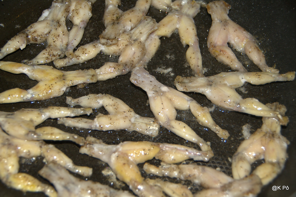Chinette cuisine pour ce soir des grenouilles et, en les regardant sautiller dans la poêle, Chinou, ce flamand rubicond du piémont pyrénéen, a pu constater la similitude avec des rondeurs évocatrices de fesses, mais un peu plates. Avec de l’aïl, du persil et une pointe de beurre, cependant, après un court séjour dans le four, il ne fait aucun doute que plates ou pas, ces petites fesses-là glisseront sous la langue du Gargantua de la petite Province, et qu’un rot, gai comme le pet d’un pinson, viendra s’épandre en guise de tue-mouches. Car telle est la vie à la campagne, savoureuse et pétaradante. Mais rude pour les convives descendus de la ville.